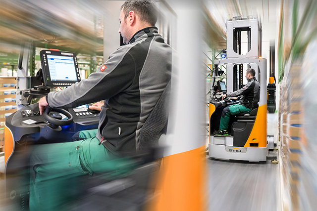 Halbautomatische Regalfachanfahrt möglich. Die technischen Voraussetzungen des NXV werden aber erst durch das OptiSpeed Fahrzeugkonzept bzw. durch das iGo pilot navigation interface voll ausgeschöpft. Dabei kommuniziert der NXV mit dem Lagerverwaltungssystem und verbindet die Prozesse im Lager zu einem intelligenten Ganzen. Erhält der Fahrer bzw. die Fahrerin einen Fahrauftrag, so kennt das Fahrzeug den nächsten anzusteuernden Lagerplatz im Hochregal. Der Stapler findet somit selbstständig seinen Weg durch die Lagergänge – fehlerhafte Auslagerungen sind dadurch ausgeschlossen.