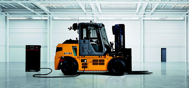 Hochspannung für hohe Leistung. Die neuen 4-9-Tonnen-Modelle der Hyundai B-X-Serie sind mit einem 309–348-VHochspannungs-Li-Ionen-Batteriesystem ausgestattet, das für die Leistungsabgabe bei intensiven Schwerlastanwendungen ausgelegt ist. Durch den Betrieb mit höherer Spannung und niedrigerem Strom minimiert das System Energieverluste, reduziert die Wärmeentwicklung in Kabeln und Steuerungen und verlängert die Lebensdauer der Komponenten. „Ein charakteristisches Merkmal dieser Gabelstapler ist das integrierte Batterie-Wasser-Kühl- und Heizsystem. Auch unter extremen Bedingungen ist direkt die volle Leistung abrufbar”, sagt Raymond Galavazi, Senior Product Manager bei Hyundai Material Handling Europe. Er fährt fort: „Die LFP-Batterietechnologie unterstützt Schnellladungen mit bis zu 120 kW. Nach einer Stunde ist die Batterie vollständig geladen und dann kann ein B-X-Stapler bis zu 11 Stunden im Dauerbetrieb eingesetzt werden.“ Die B-X-Serie basiert auf dem Fahrgestell der Dieselstapler und verfügt über Komponenten der Schutzklassen IP67/IP69. Sie ist für den zuverlässigen Einsatz unter anspruchsvollen Allwetterbedingungen ausgelegt.